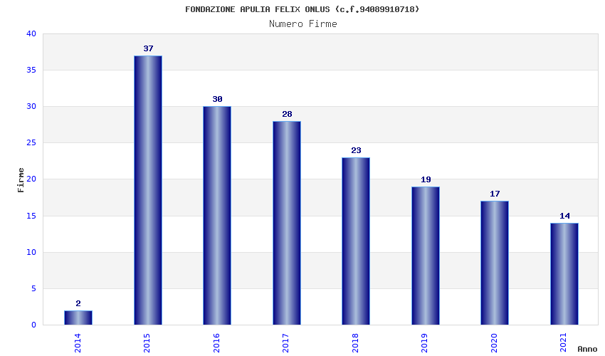 | Anno | Firme | Importi | Media | Naz. | Reg. | Prov. | Comu. |