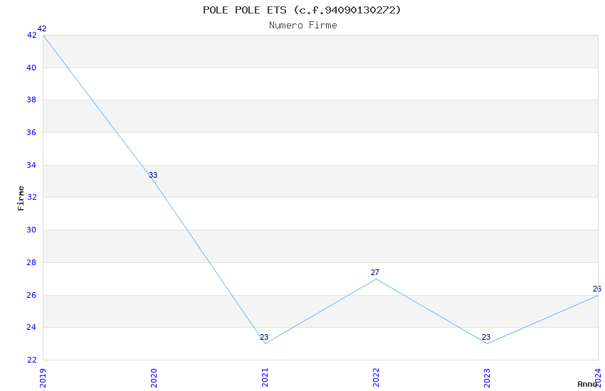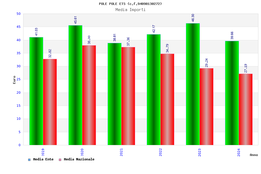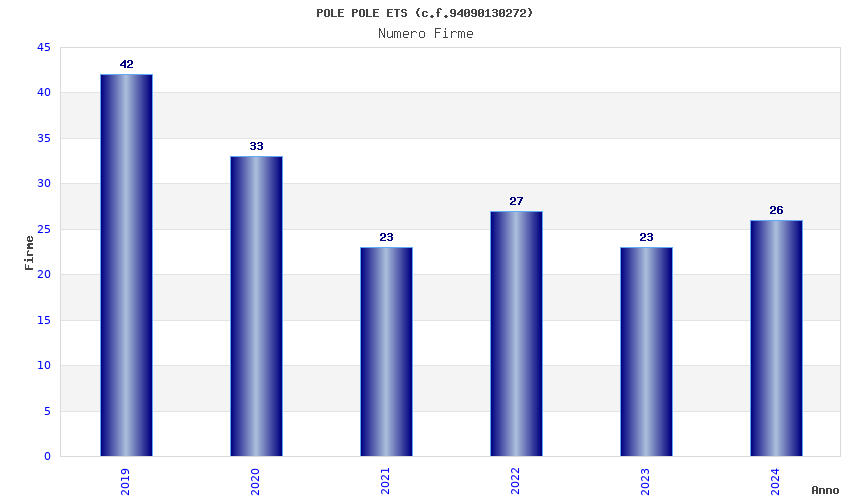 | Anno | Firme | Importi | Media | Naz. | Reg. | Prov. | Comu. |