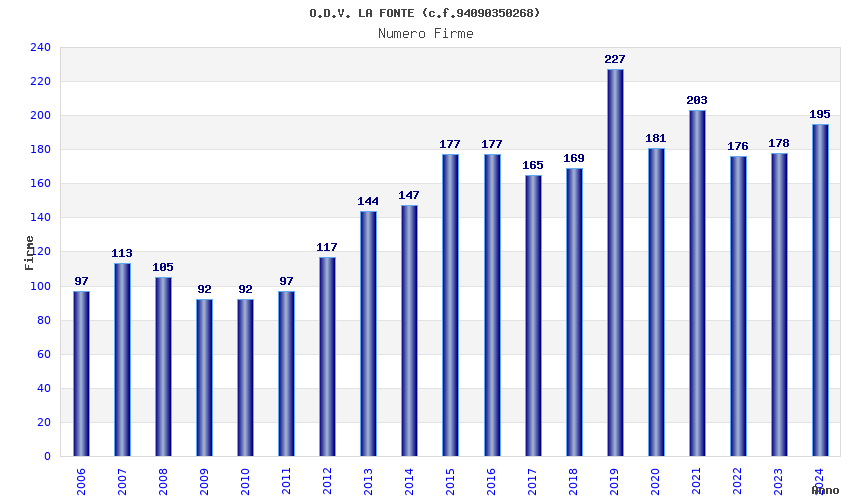 | 2024 | 195 | 4.418,11 | 22,66 | 12.165 | 1.093 | 177 | 2 |