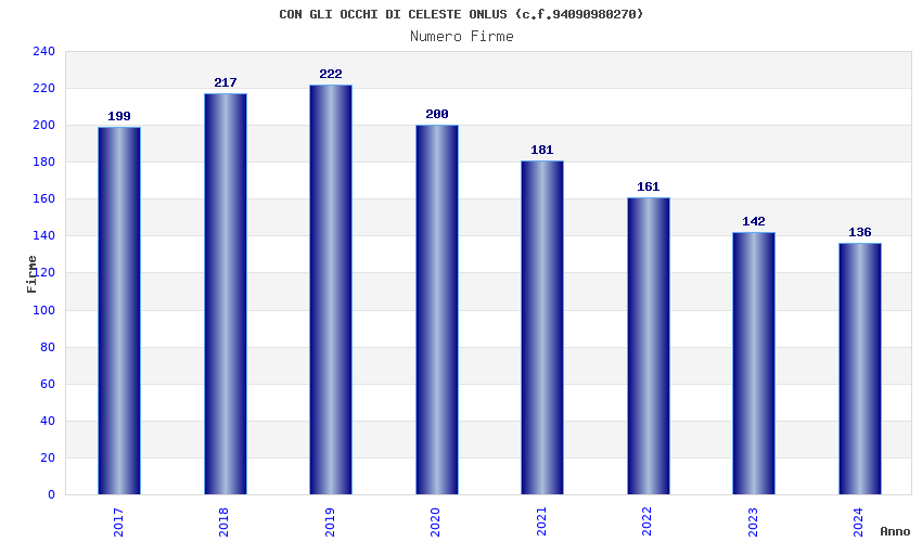 | Anno | Firme | Importi | Media | Naz. | Reg. | Prov. | Comu. |