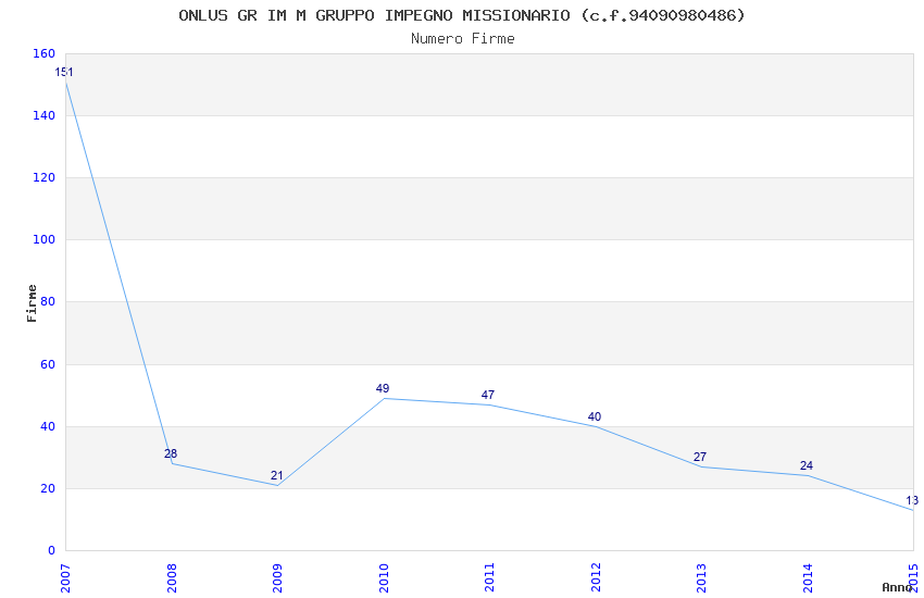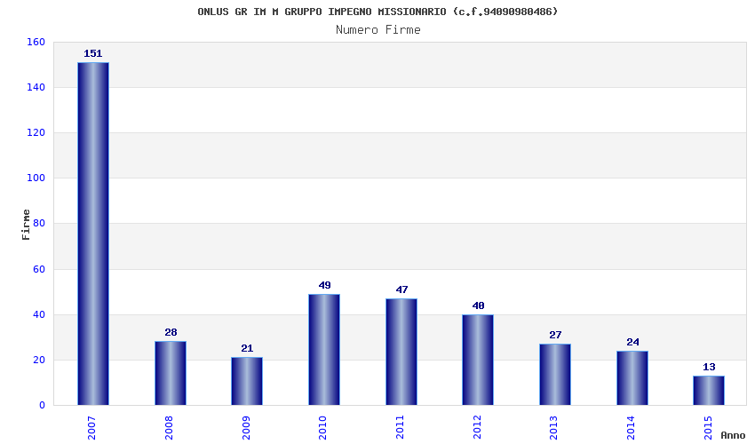 | Anno | Firme | Importi | Media | Naz. | Reg. | Prov. | Comu. |