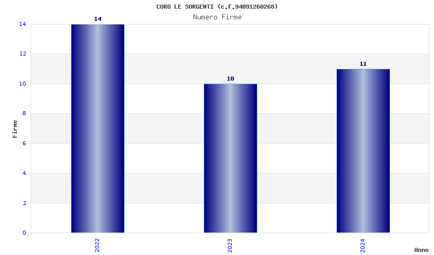 | Anno | Firme | Importi | Media | Naz. | Reg. | Prov. | Comu. |