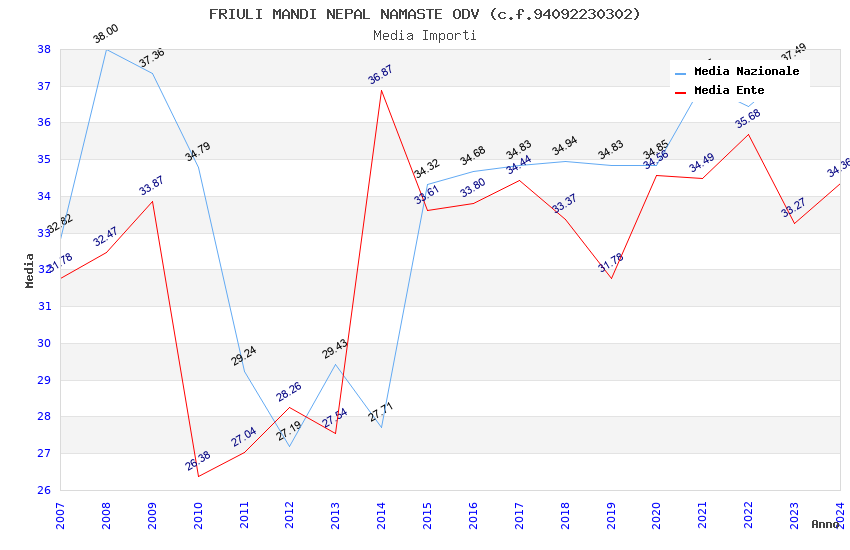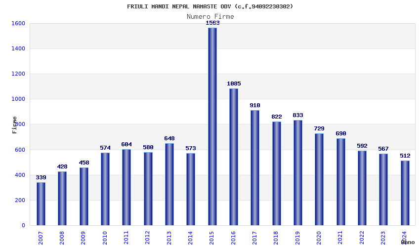 | Anno | Firme | Importi | Media | Naz. | Reg. | Prov. | Comu. |