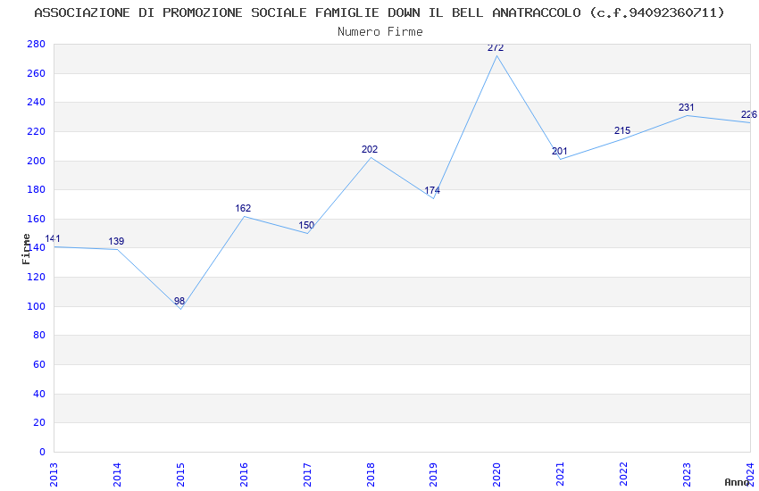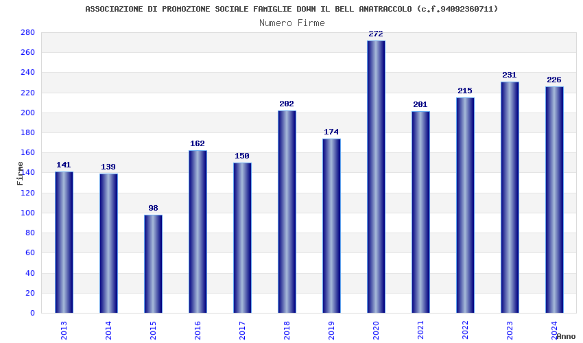 | Anno | Firme | Importi | Media | Naz. | Reg. | Prov. | Comu. |