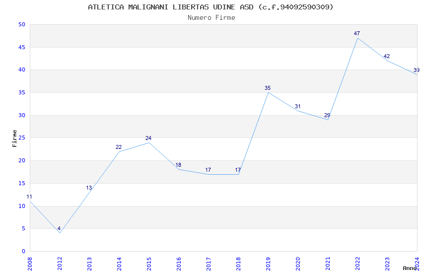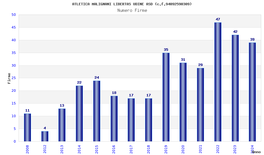 | Anno | Firme | Importi | Media | Naz. | Reg. | Prov. | Comu. |