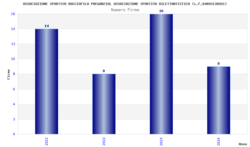 | Anno | Firme | Importi | Media | Naz. | Reg. | Prov. | Comu. |
