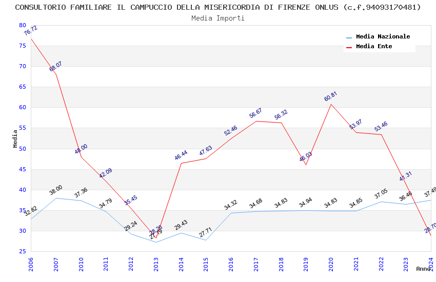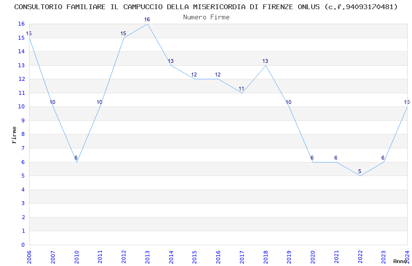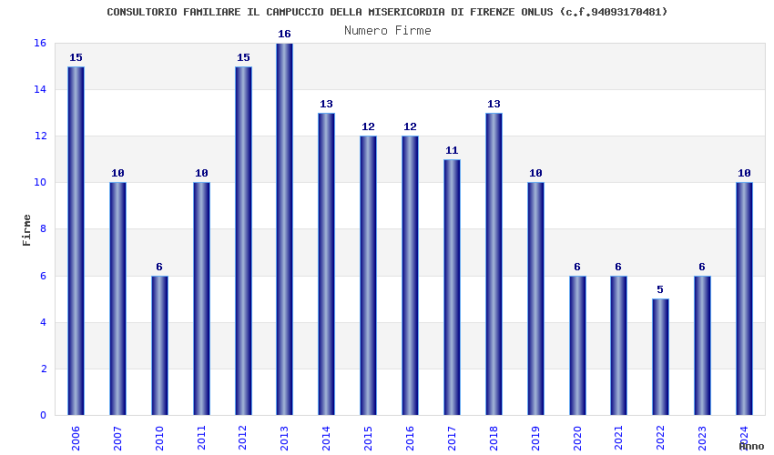 | Anno | Firme | Importi | Media | Naz. | Reg. | Prov. | Comu. |