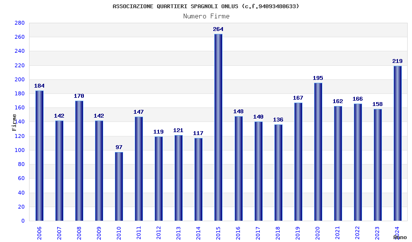 | Anno | Firme | Importi | Media | Naz. | Reg. | Prov. | Comu. |