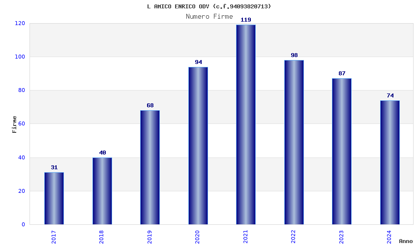 | Anno | Firme | Importi | Media | Naz. | Reg. | Prov. | Comu. |