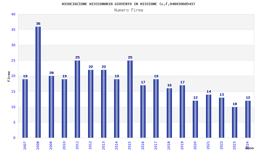 | Anno | Firme | Importi | Media | Naz. | Reg. | Prov. | Comu. |