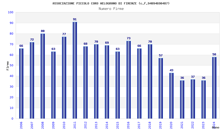 | Anno | Firme | Importi | Media | Naz. | Reg. | Prov. | Comu. |