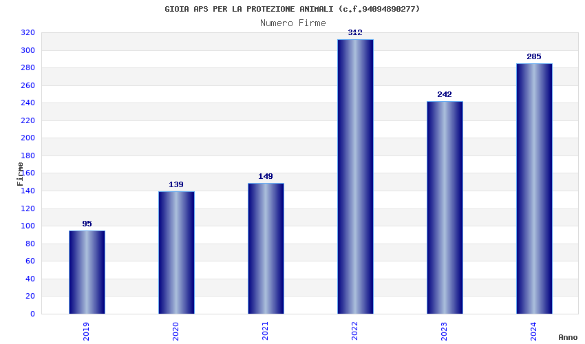 | Anno | Firme | Importi | Media | Naz. | Reg. | Prov. | Comu. |