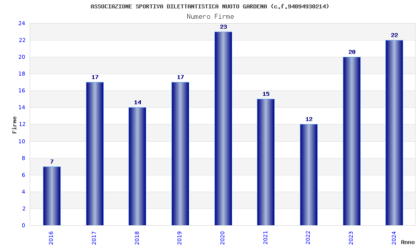 | Anno | Firme | Importi | Media | Naz. | Reg. | Prov. | Comu. |