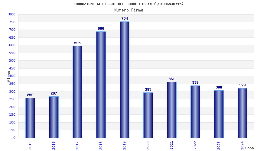| Anno | Firme | Importi | Media | Naz. | Reg. | Prov. | Comu. |