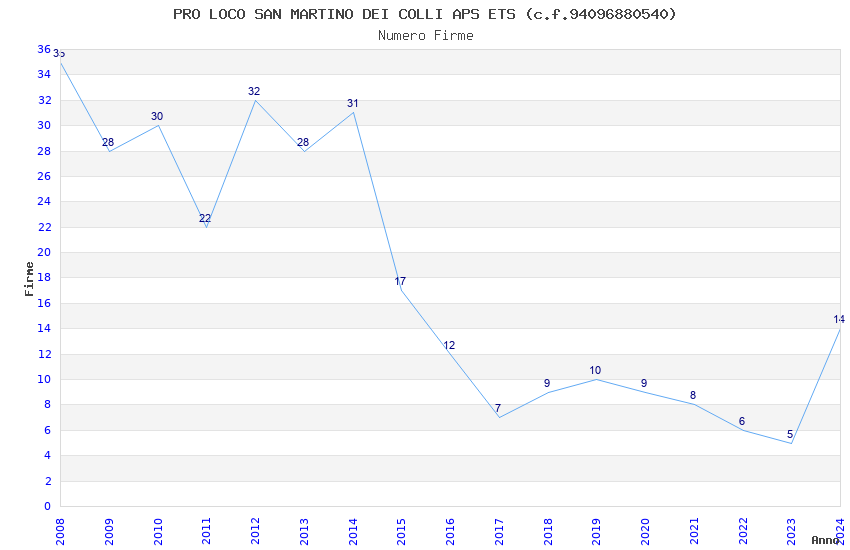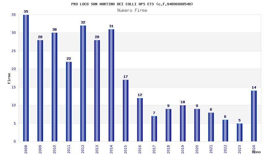 | Anno | Firme | Importi | Media | Naz. | Reg. | Prov. | Comu. |