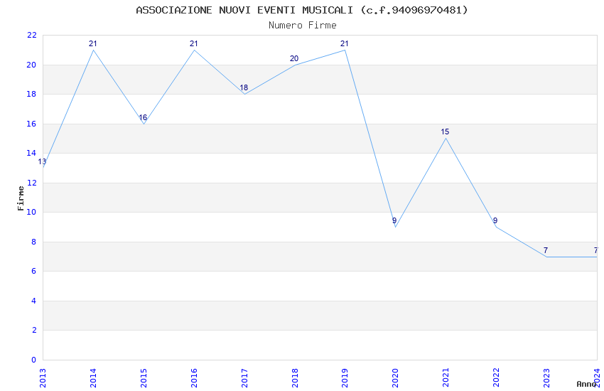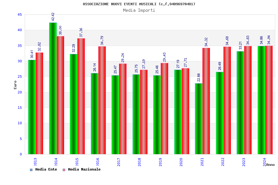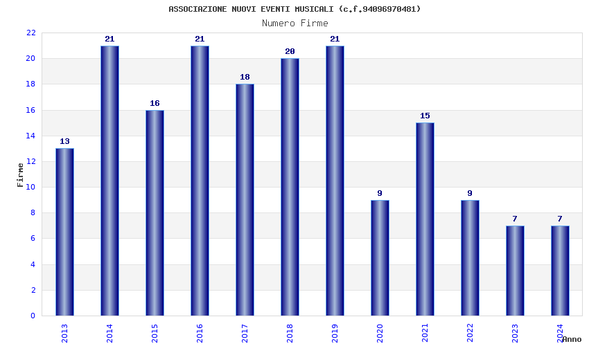 | Anno | Firme | Importi | Media | Naz. | Reg. | Prov. | Comu. |