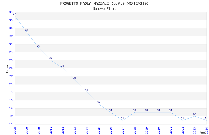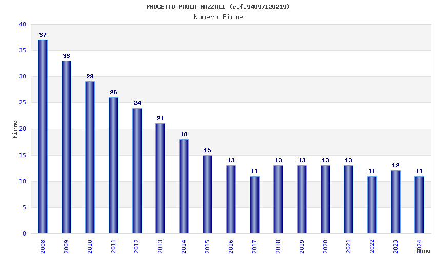 | Anno | Firme | Importi | Media | Naz. | Reg. | Prov. | Comu. |
