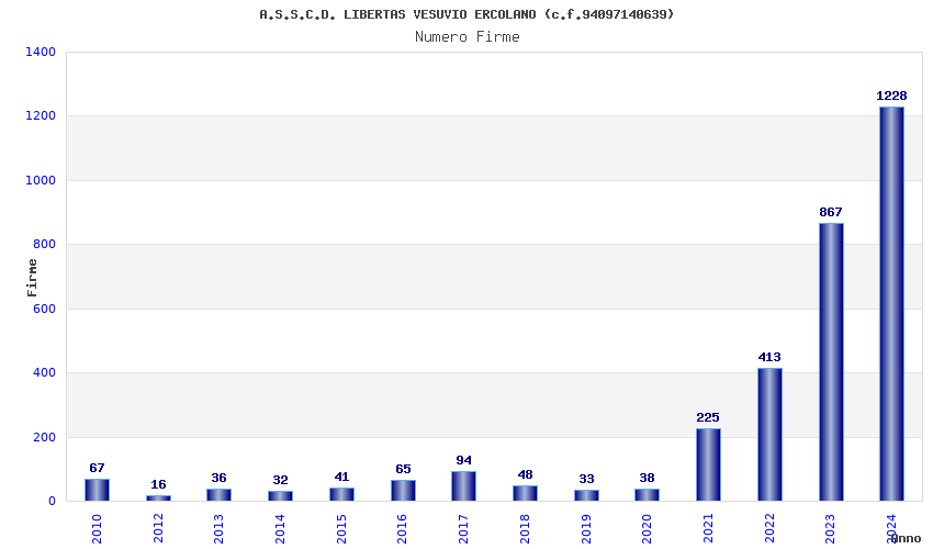 | Anno | Firme | Importi | Media | Naz. | Reg. | Prov. | Comu. |