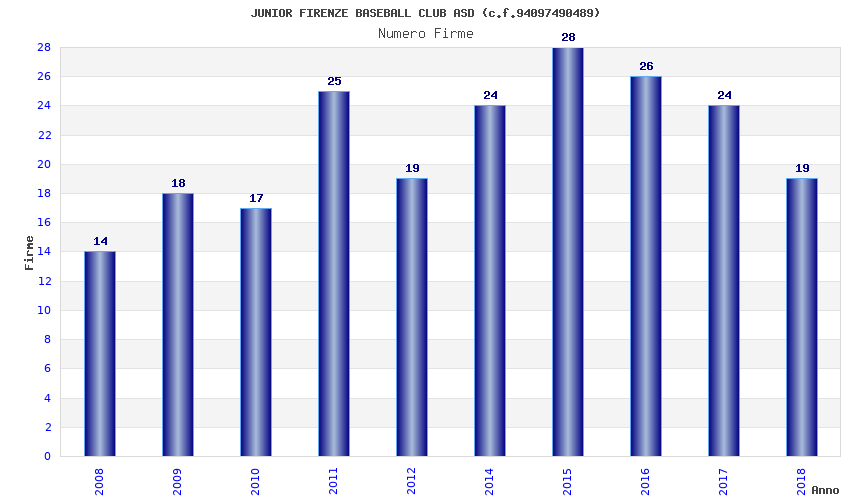 | Anno | Firme | Importi | Media | Naz. | Reg. | Prov. | Comu. |