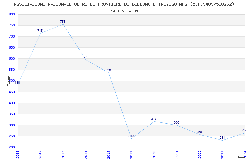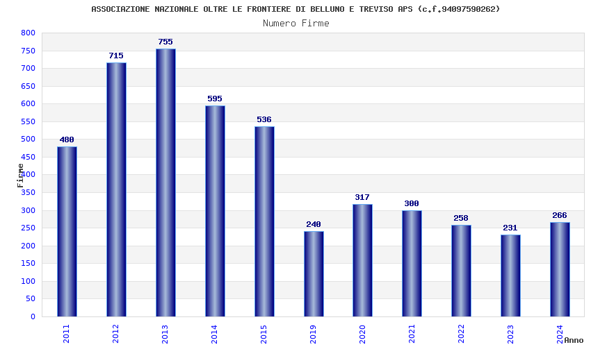 | Anno | Firme | Importi | Media | Naz. | Reg. | Prov. | Comu. |