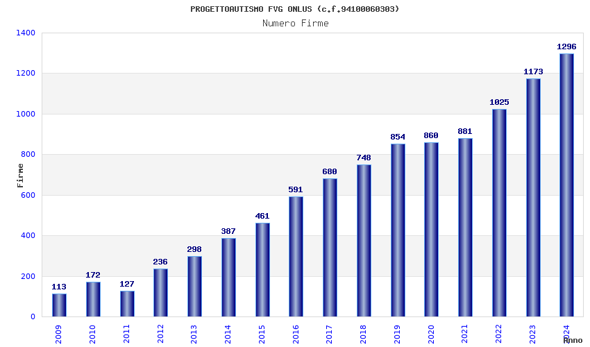| Anno | Firme | Importi | Media | Naz. | Reg. | Prov. | Comu. |