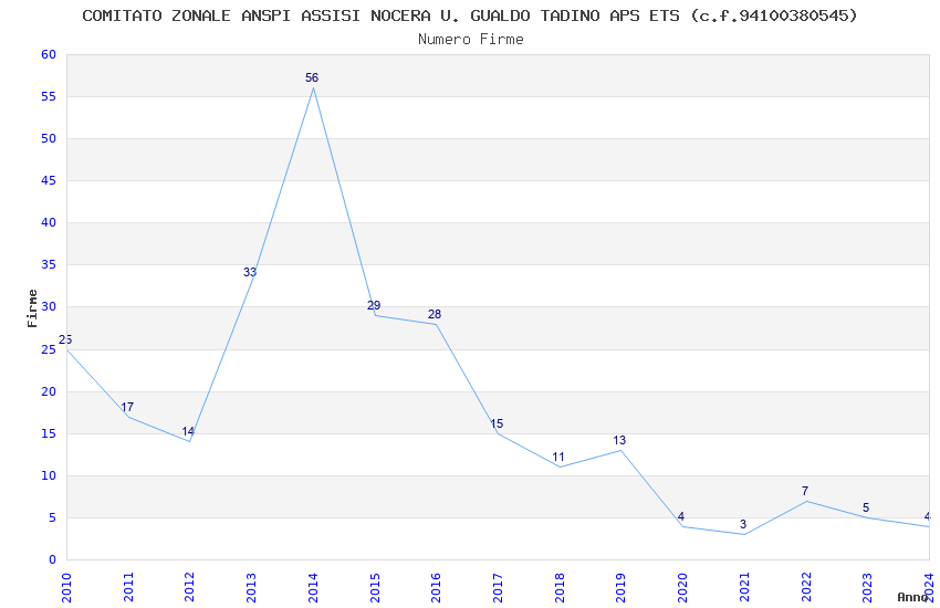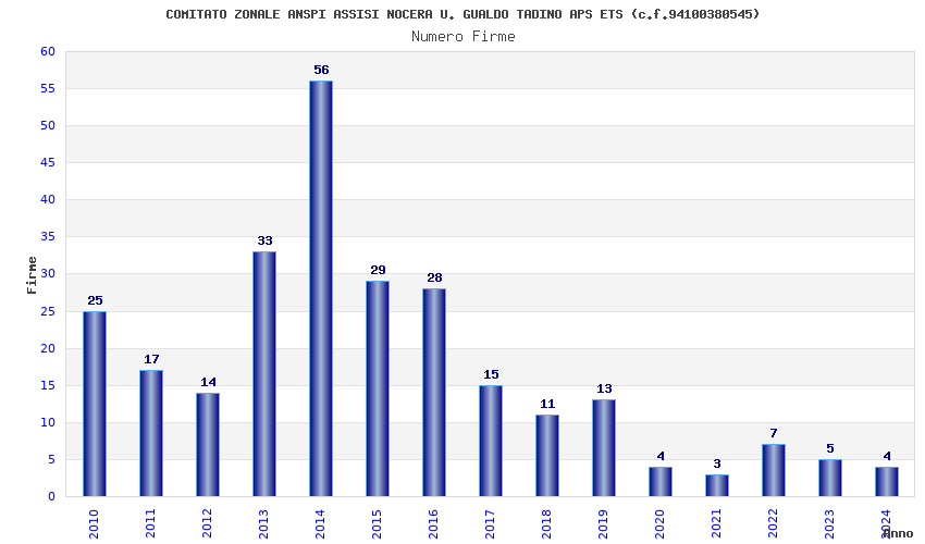 | Anno | Firme | Importi | Media | Naz. | Reg. | Prov. | Comu. |