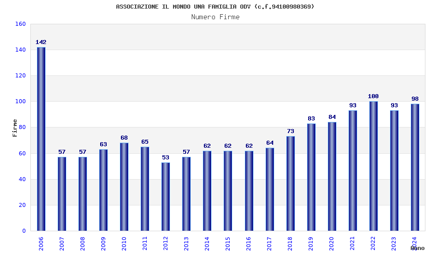 | Anno | Firme | Importi | Media | Naz. | Reg. | Prov. | Comu. |