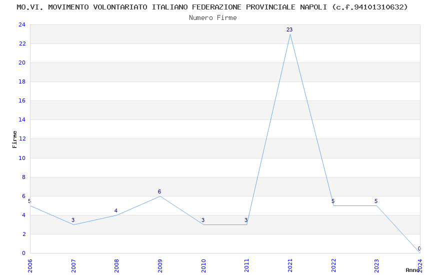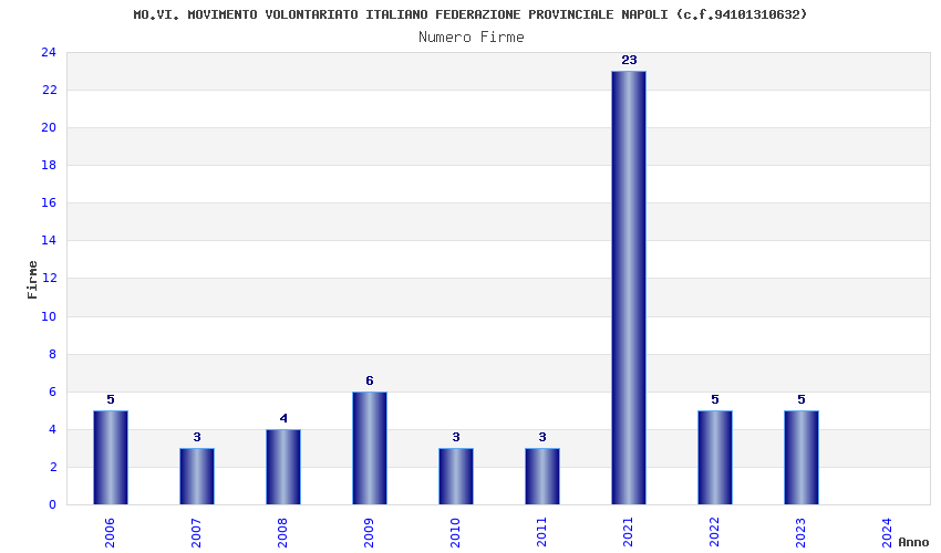 | Anno | Firme | Importi | Media | Naz. | Reg. | Prov. | Comu. |