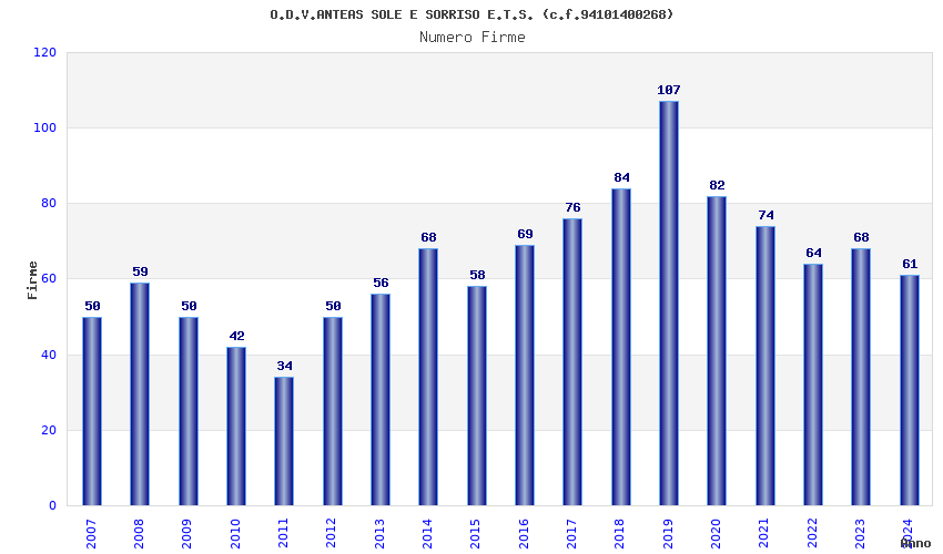 | 2019 | 107 | 3.223,21 | 30,12 | 16.639 | 1.584 | 264 | 3 |