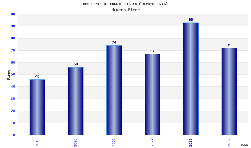 | Anno | Firme | Importi | Media | Naz. | Reg. | Prov. | Comu. |