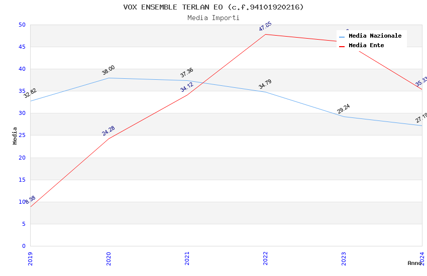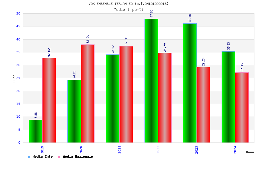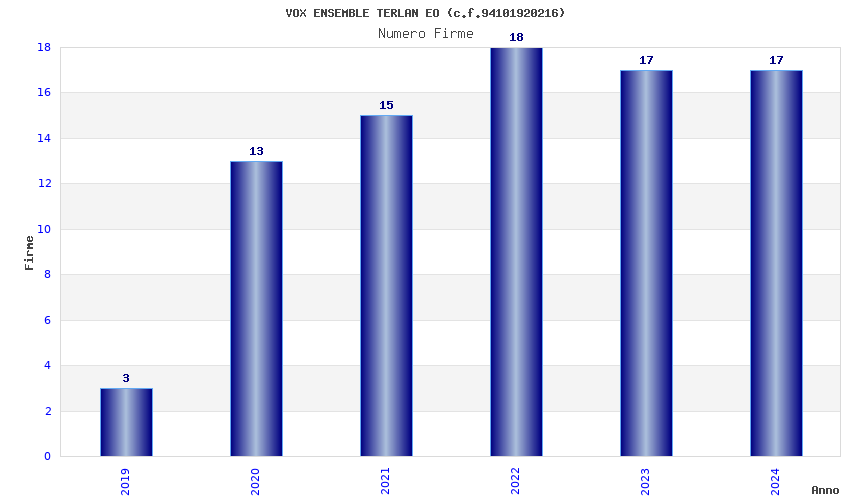 | Anno | Firme | Importi | Media | Naz. | Reg. | Prov. | Comu. |