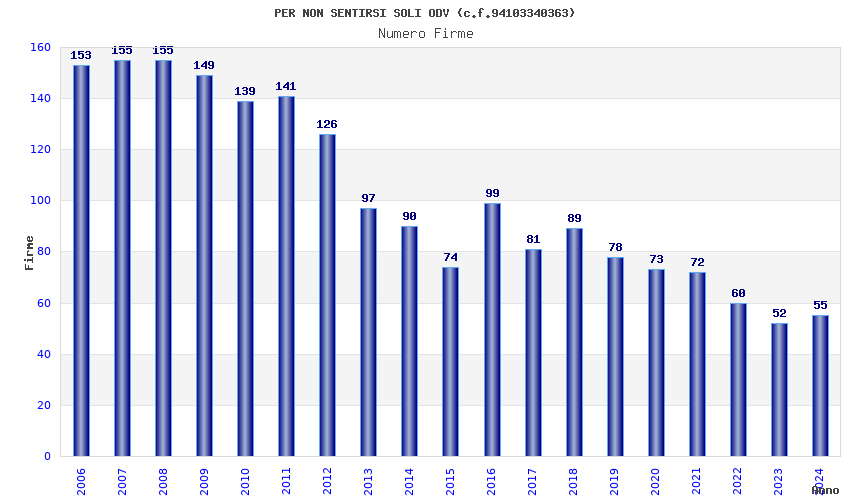 | Anno | Firme | Importi | Media | Naz. | Reg. | Prov. | Comu. |