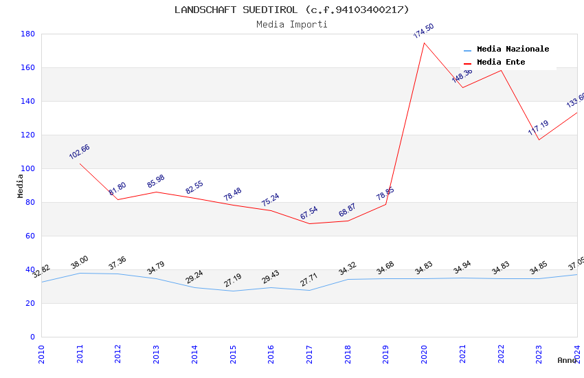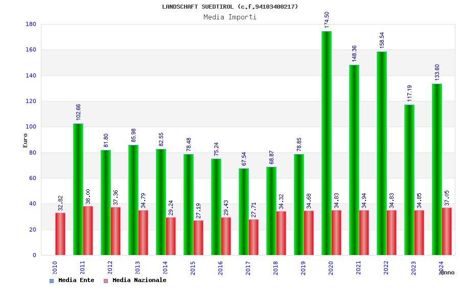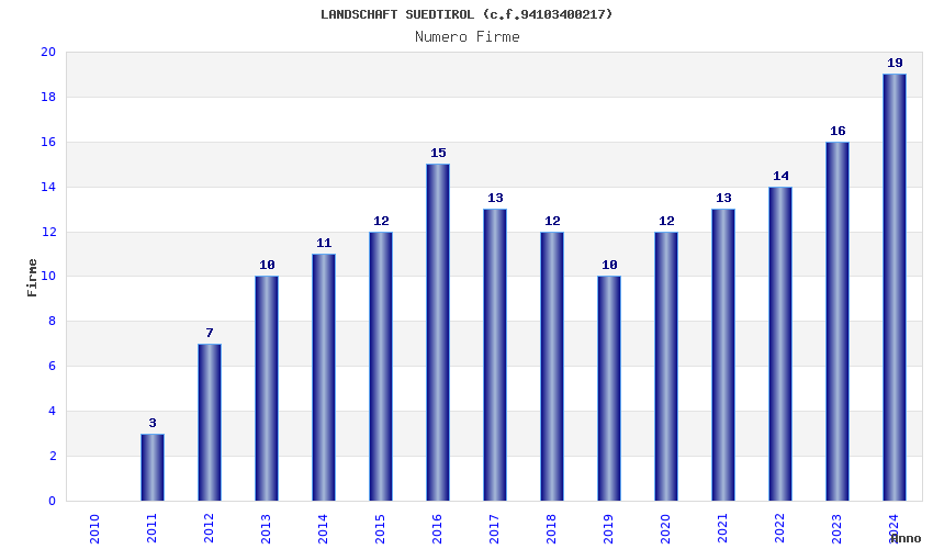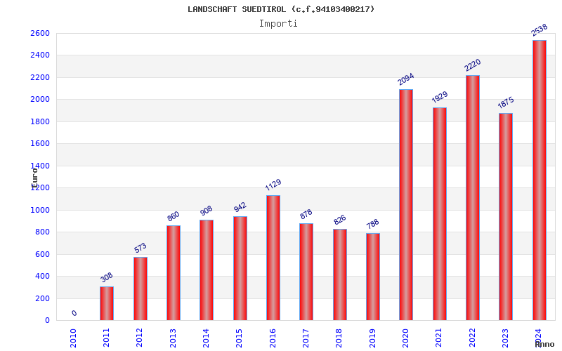 | Anno | Firme | Importi | Media | Naz. | Reg. | Prov. | Comu. |