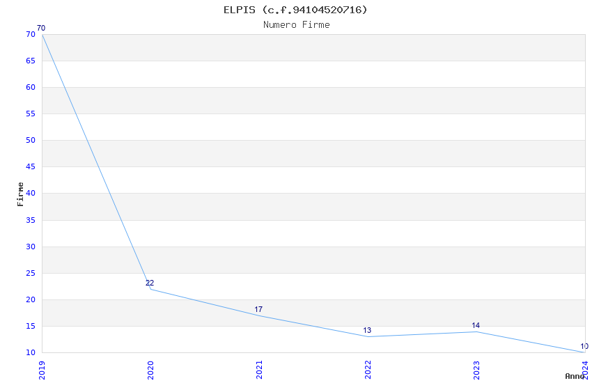 | 2019 | 70 | 3.696,00 | 52,80 | 14.742 | 683 | 126 | 48 |