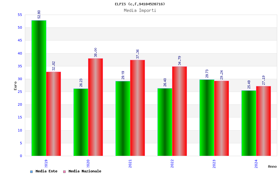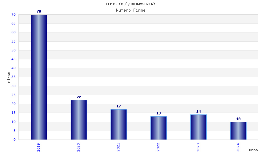 | Anno | Firme | Importi | Media | Naz. | Reg. | Prov. | Comu. |