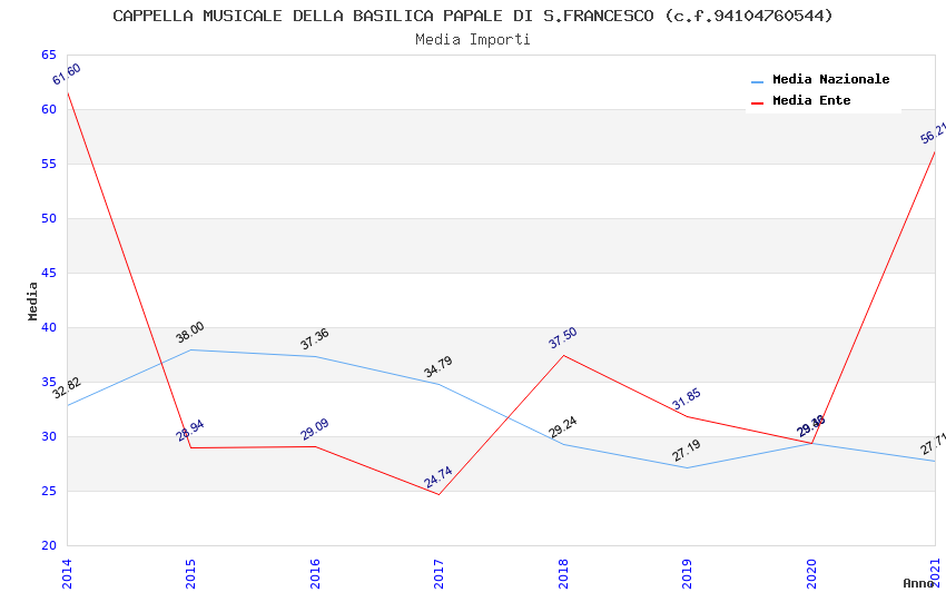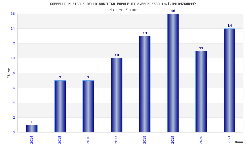 | Anno | Firme | Importi | Media | Naz. | Reg. | Prov. | Comu. |