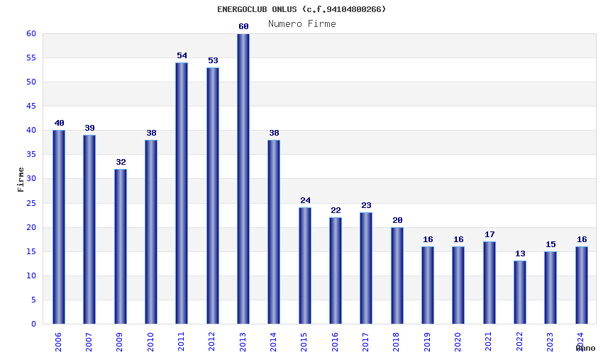 | Anno | Firme | Importi | Media | Naz. | Reg. | Prov. | Comu. |