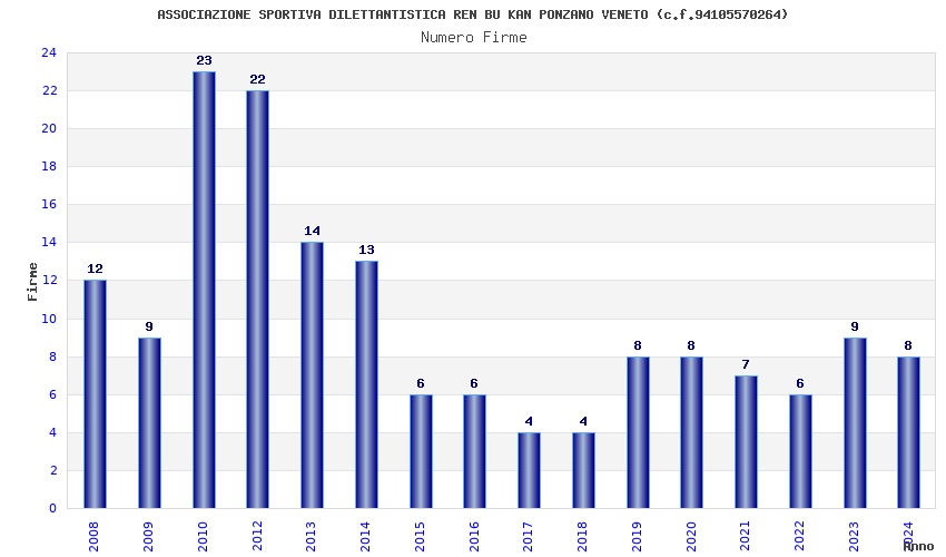 | Anno | Firme | Importi | Media | Naz. | Reg. | Prov. | Comu. |