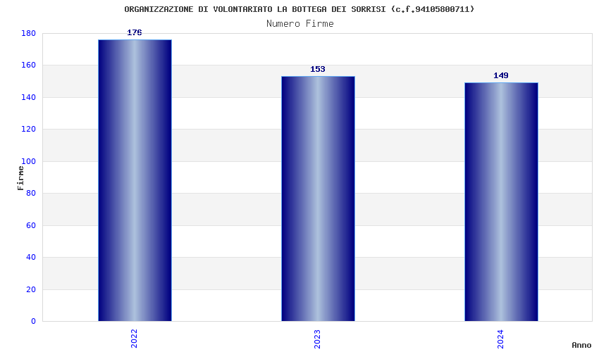 | Anno | Firme | Importi | Media | Naz. | Reg. | Prov. | Comu. |