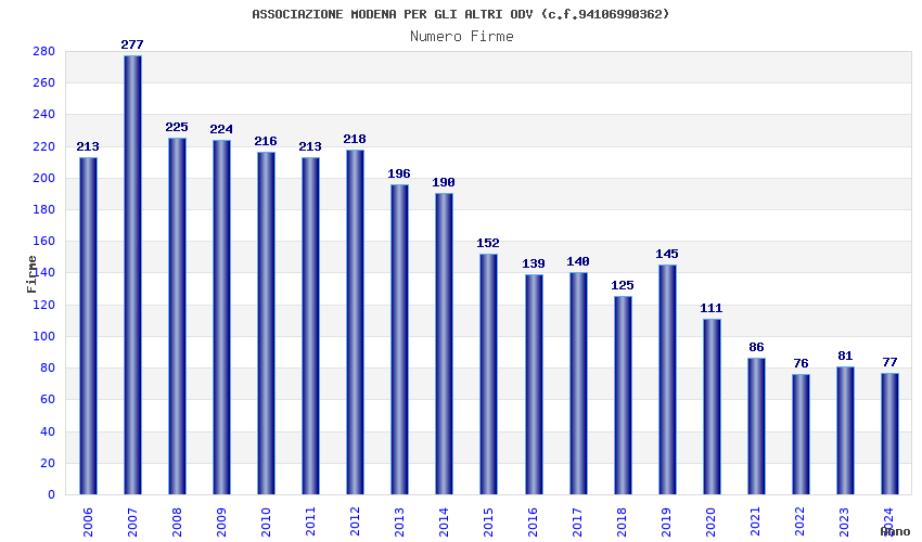 | 2024 | 77 | 3.873,09 | 50,30 | 13.838 | 1.180 | 179 | 61 |