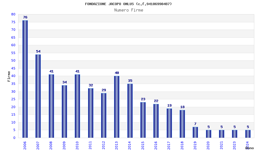 | Anno | Firme | Importi | Media | Naz. | Reg. | Prov. | Comu. |