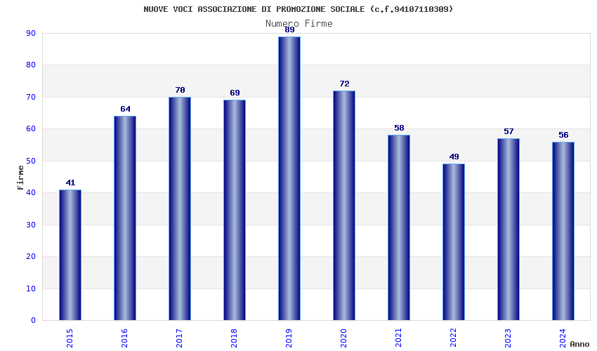| Anno | Firme | Importi | Media | Naz. | Reg. | Prov. | Comu. |