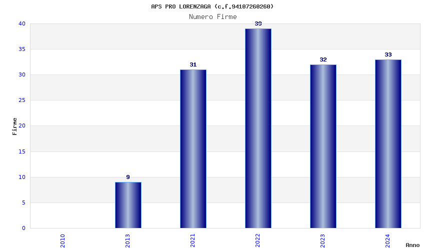 | Anno | Firme | Importi | Media | Naz. | Reg. | Prov. | Comu. |