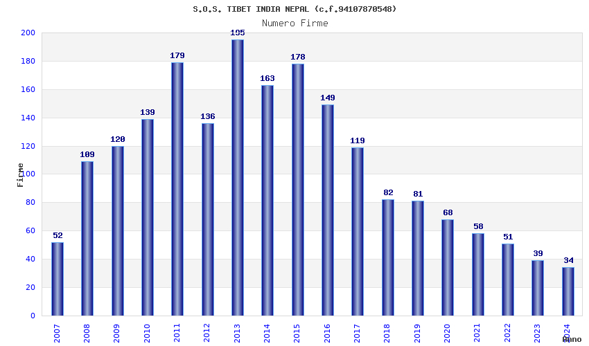 | Anno | Firme | Importi | Media | Naz. | Reg. | Prov. | Comu. |