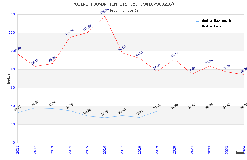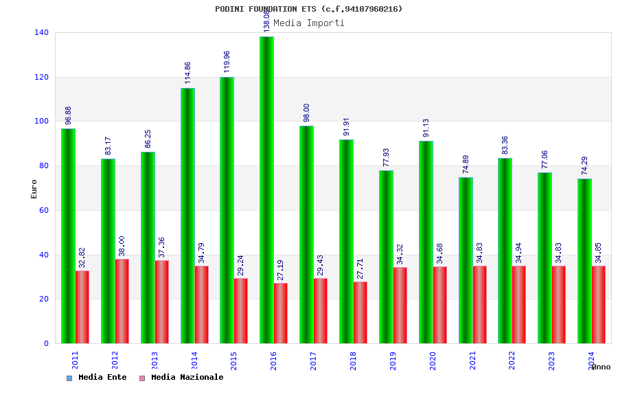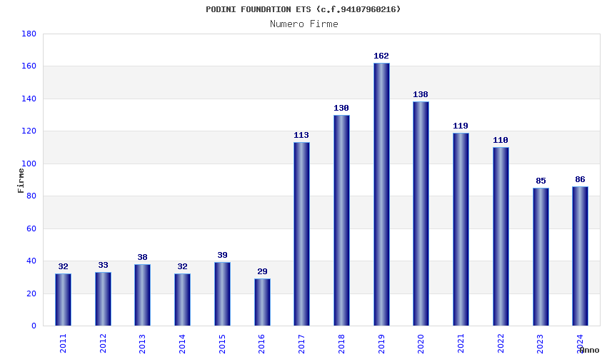 | Anno | Firme | Importi | Media | Naz. | Reg. | Prov. | Comu. |