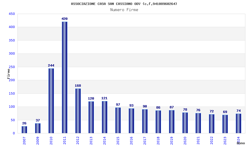 | Anno | Firme | Importi | Media | Naz. | Reg. | Prov. | Comu. |