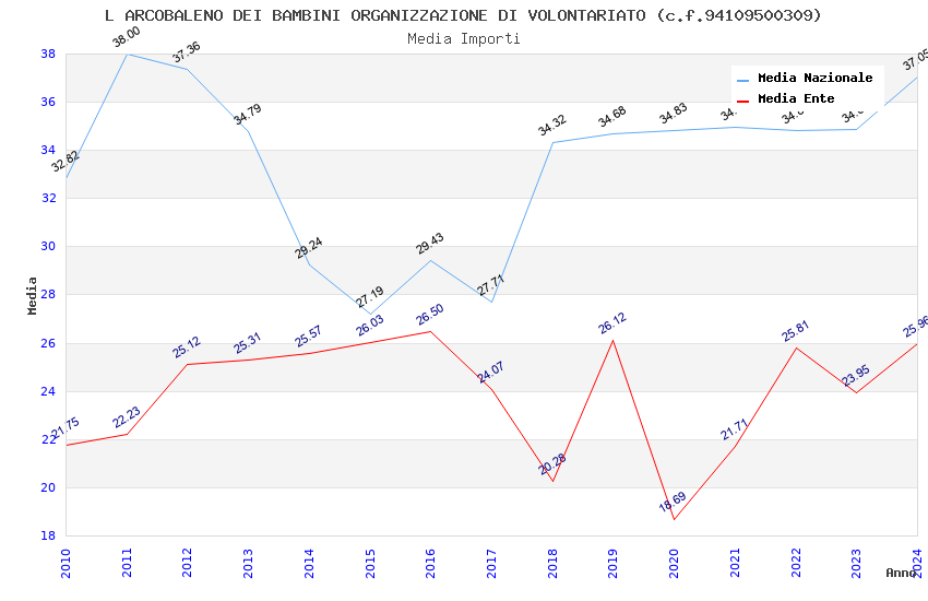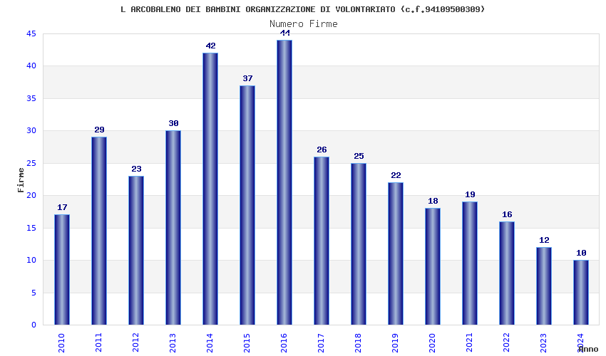| Anno | Firme | Importi | Media | Naz. | Reg. | Prov. | Comu. |