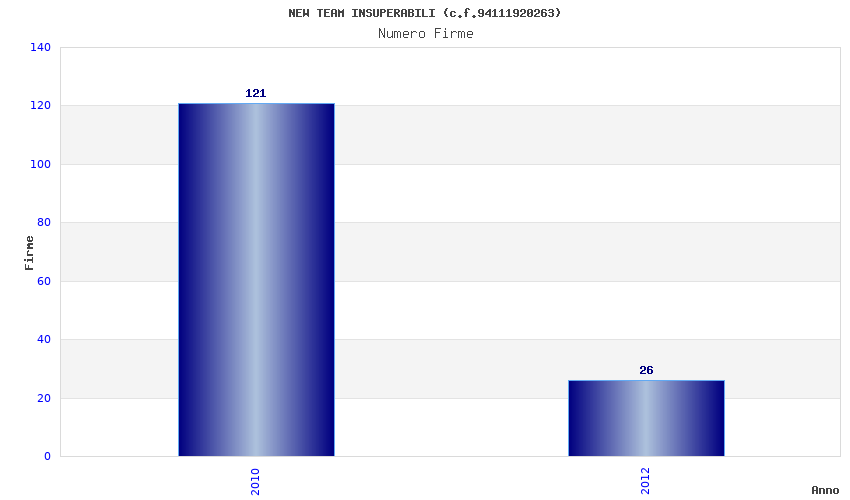 | Anno | Firme | Importi | Media | Naz. | Reg. | Prov. | Comu. |