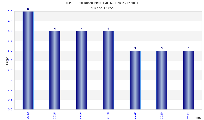 | Anno | Firme | Importi | Media | Naz. | Reg. | Prov. | Comu. |