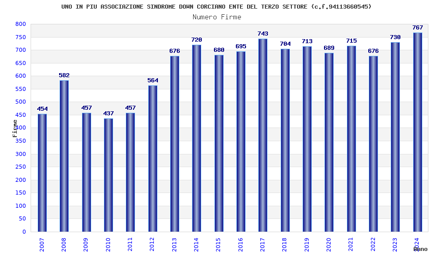 | Anno | Firme | Importi | Media | Naz. | Reg. | Prov. | Comu. |